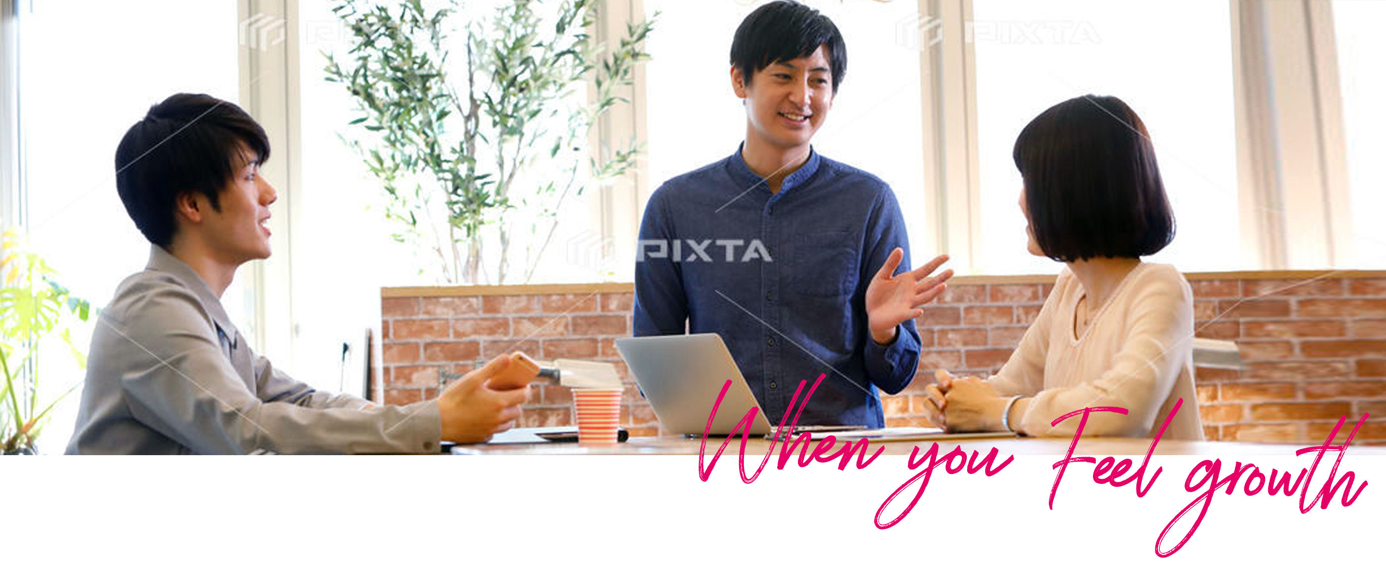 入社当初は知らないことが多いのもあってか、受け身の姿勢だったよね。でも今では後輩にいろいろ教えるようになり、少しずつ積極的になってきて、成長を感じているよ。